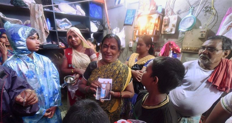 Family members of illicit liquor victims at the slum area of Malvani in Mumbai on Saturday. PTI Photo by Santosh Hirlekar