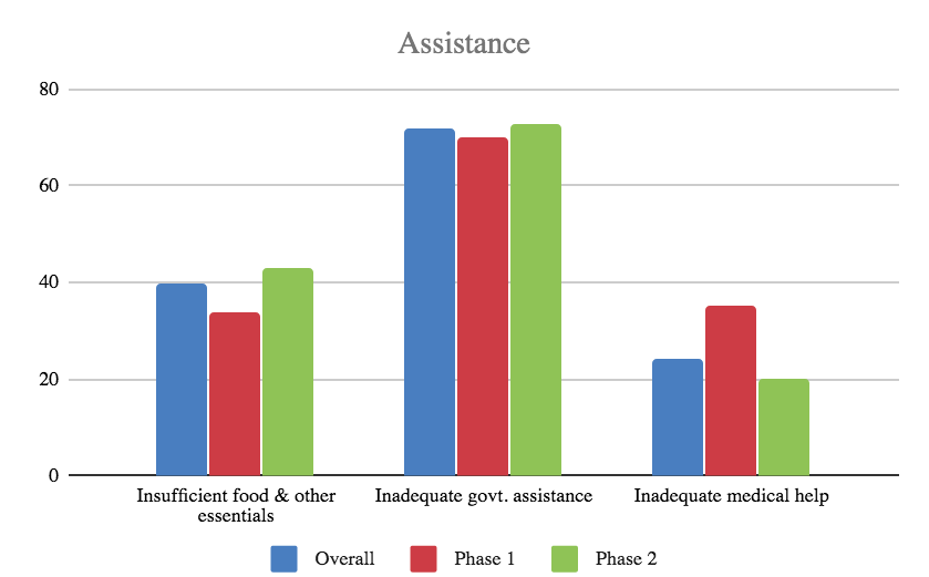 Thus, even though the outreach of the government has perceptibly improved – either because the respondents’ expectations have also gone up or their awareness about the availability of assistance has increased – the reported inadequacy of assistance has risen. The silver lining is the reported improvement in medical assistance over time, as shown by the response in Phase 2.