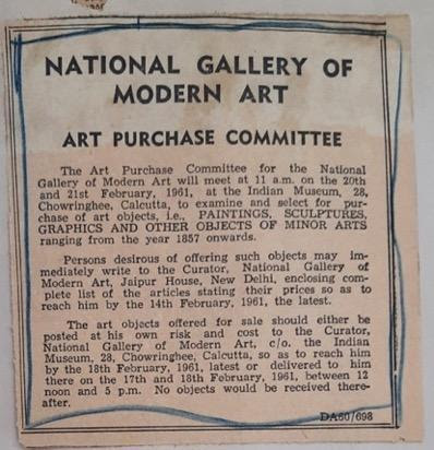NGMA Advertisement, The Statesman, February 8, 1961. Photo: Shukla Sawant