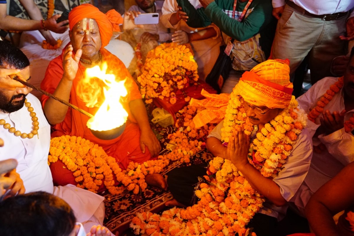 Manish Sisodia, deputy chief minister of Delhi, marched alongside Sanjay Singh in the yatra, which concluded in Ayodhya on September 14 after Sisodia and Singh offered prayers at the Ram Temple.