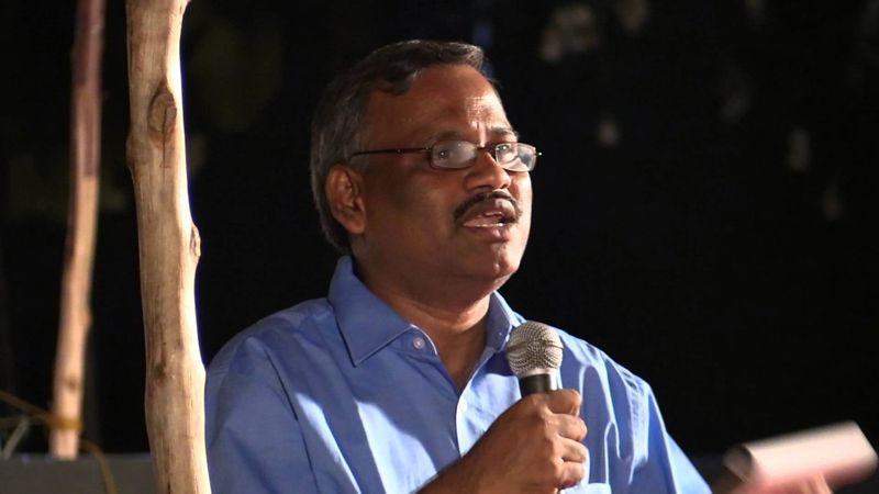 EFLU professor K. Satyanarayana (in blue, finger pointing towards the camera). Credit: Facebook video