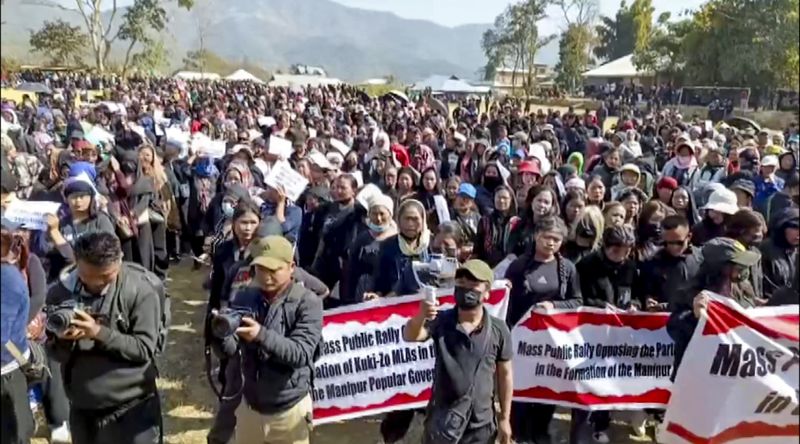 New Delhi: Two days after normal life was paralysed in Kuki-Zo-dominated districts of Manipur, as protests intensified against three legislators from the community for joining the state’s newly formed government, the situation somewhat improved on Saturday (February 7). The MLAs have drawn community anger for defying a stand taken by Kuki-Zo civil society groups, in response to which came the two-day agitation that included shutdowns, rallies and sporadic violence.
