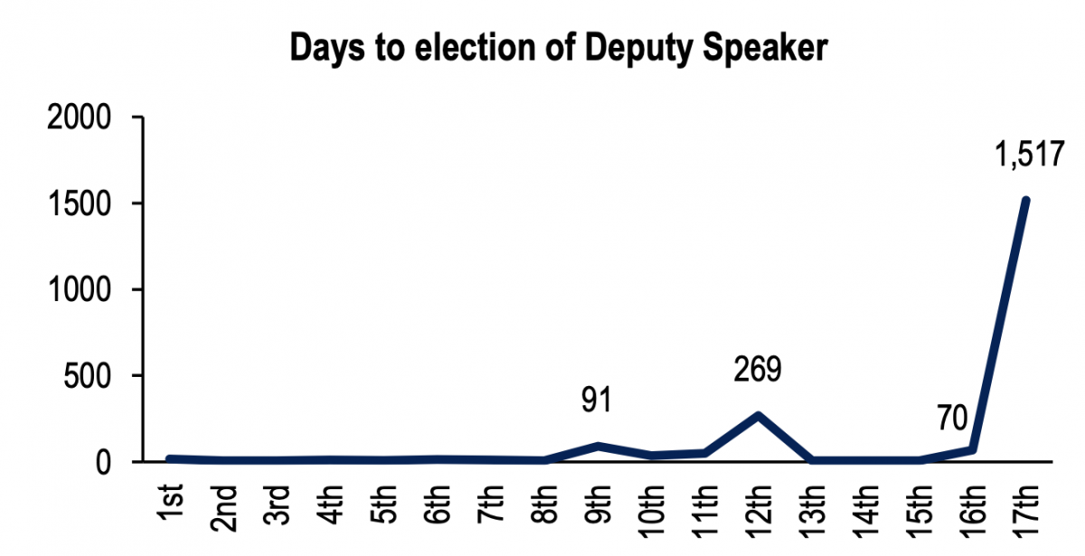 Deputy Speaker not elected with less than a year of the 17th Lok Sabha remaining