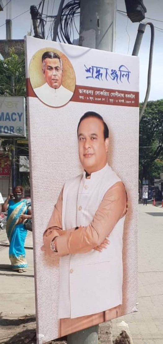 On August 5, hoardings were erected to commemorate the death anniversary of Assam’s first chief minister, Gopinath Bordoloi. A large photo of Sarma's was seen on these boards, while Bordoloi’s image took a back seat, appearing in a small circular frame just above the present chief minister.