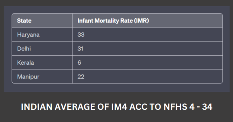 According to NFHS-4, Manipur's infant mortality rate (IMR) stands at 22, which is lower than the national average of 41. The figures indicate a better infant health outcome in the state compared to the country as a whole.