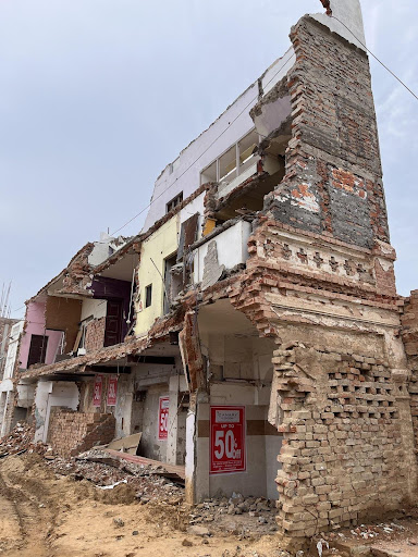 A partly demolished house on the under construction Rampath. Photo: Vipul Kumar and Alishan Jafri
