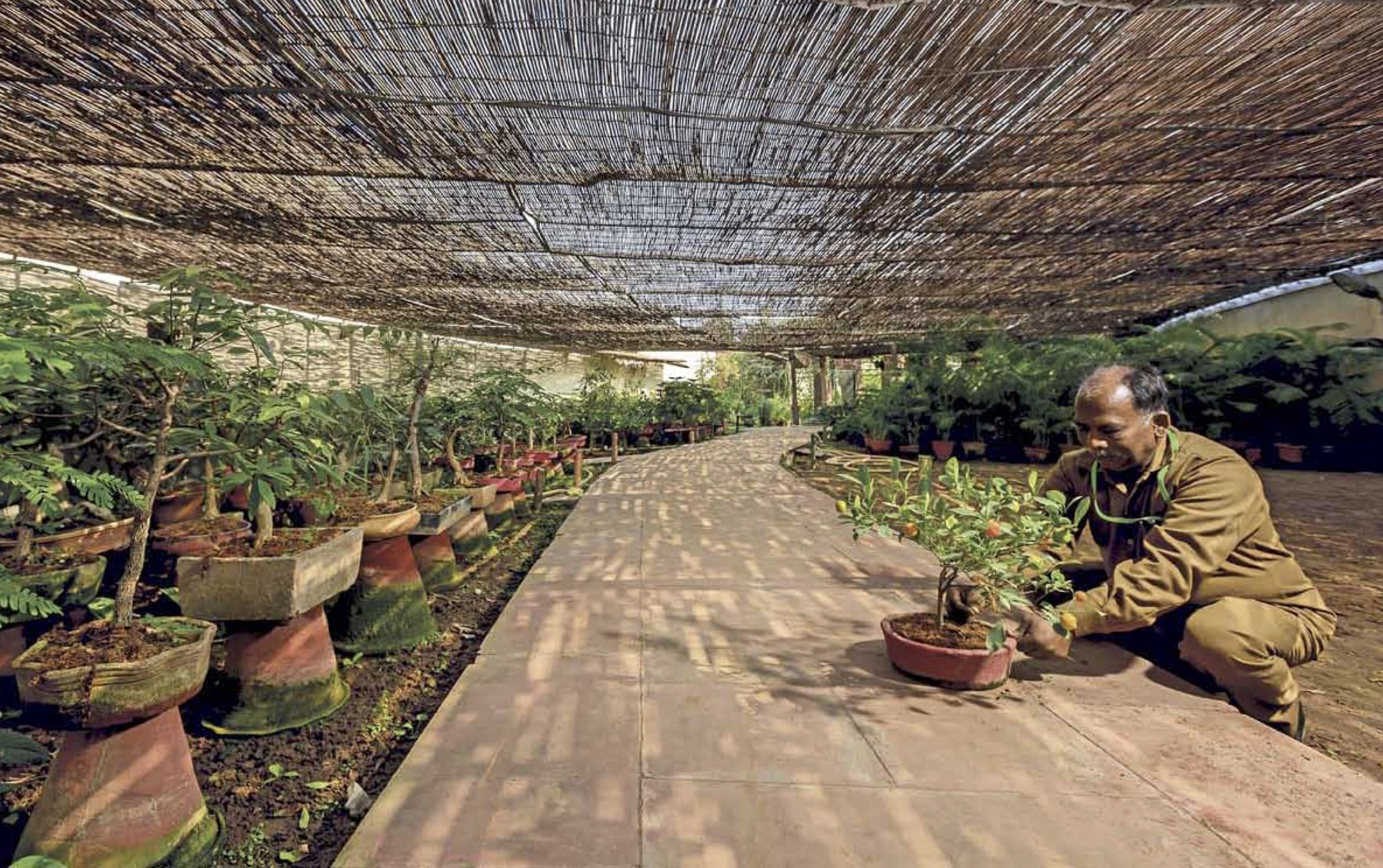 There are no manuals or training courses on the President’s Estate, only years of apprenticeship working alongside the more experienced malis. Gardeners do visit the annual fair at the Pusa Agricultural Research Institute where they get to see new vegetable varieties and farming equipment, but that’s about it. In the past, they gleaned information and techniques from experts on bonsai or cacti or roses who were occasionally brought in to advise on the Rashtrapati Bhavan collections.