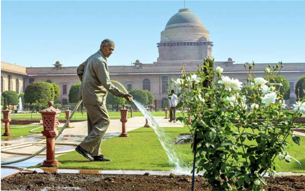 A hundred years ago, what is now the President’s Estate was a sun-blasted, boulder-strewn saddleback, one among several hills in the northernmost spur of the Aravalli range. If Lutyens were to visit the President’s Estate today, he would encounter a greatly altered ecology, far greener and moister than he had left it. Amita Baviskar gives us a glimpse of the work of the army of skilled gardeners who tend to this green oasis in the heart of New Delhi.