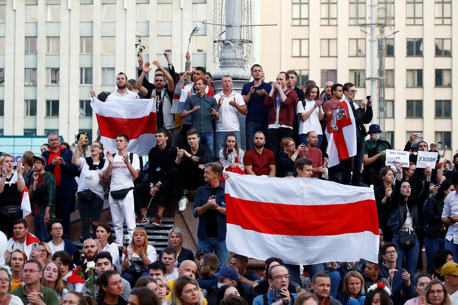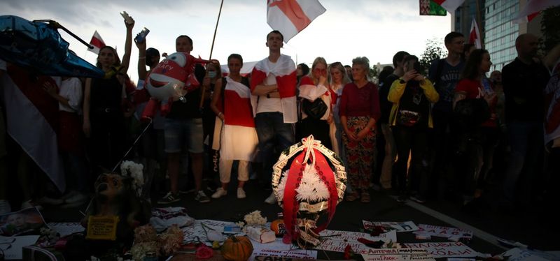 People attend an opposition demonstration to protest against police violence near Government House in Minsk. Photo: Reuters