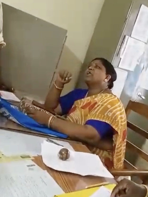 A screengrab from the video showing the exchange between a gram panchayat head and a contractor.