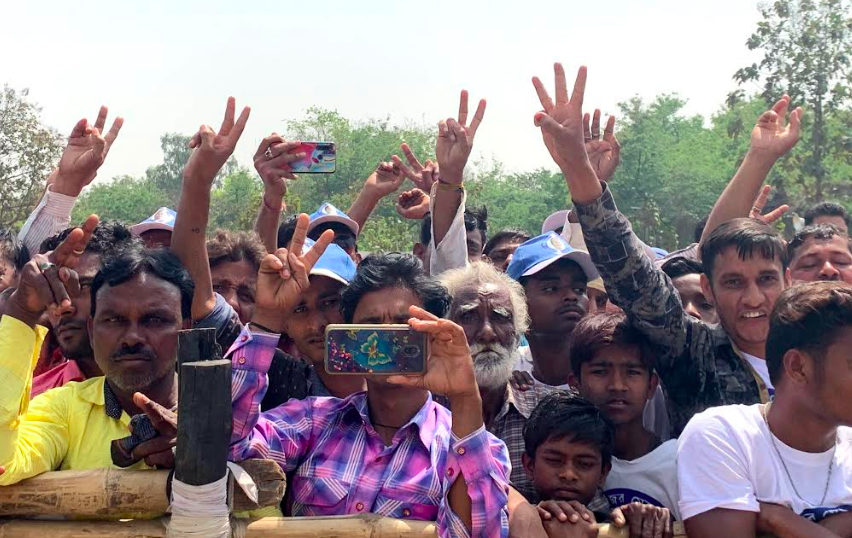 Gorai was accompanied by two other men from the same village – Nandlal Bauri and Dulal Baori. They were on their way back from Mamata’s rally at Mejhia. Although wearing TMC merchandise, Dulal said his vote was going to the BJP. “You can see the TMC hat on my head but my vote will go to Modi. Mamata has brought no employment to this region. Down this road there is a small plant but we are not the ones getting jobs there, and our village is thirsting for a proper water connection,” Dulal complains.