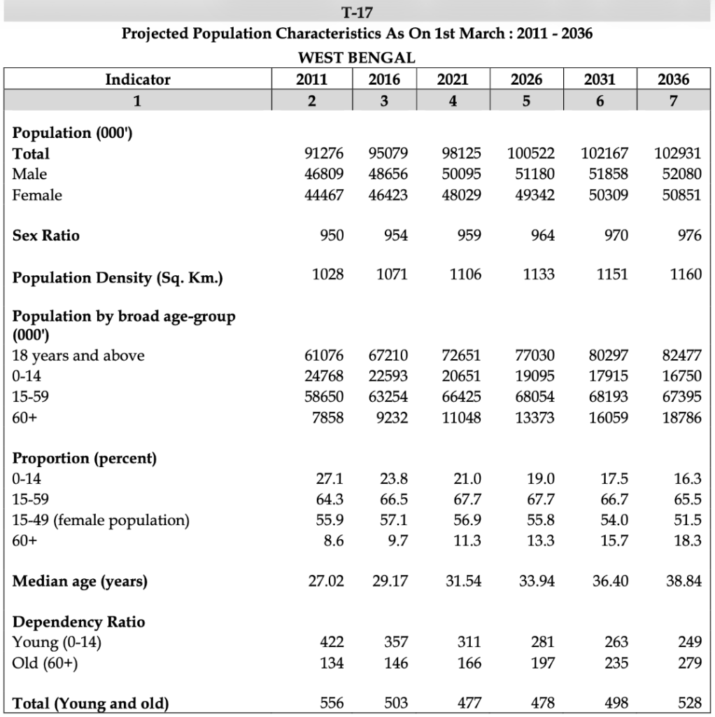 Table 17A of the Report of the Technical Group on Population Projections (2011–2036)