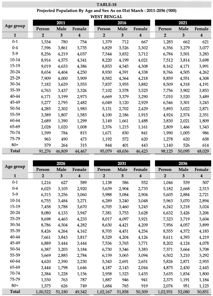 Table 18 of the Report of the Technical Group on Population Projections (2011–2036)
