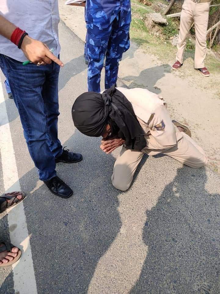 A baffled Tamta asked what he had done wrong. The DAO and the other men (along with ASI Singh) forced Tamta to hold his ears and do sit-ups on the road. He was forced to apologise with folded hands and fell on the officer’s feet. Visuals of the 'punishment' handed out to the chowkidar soon went viral on social media.