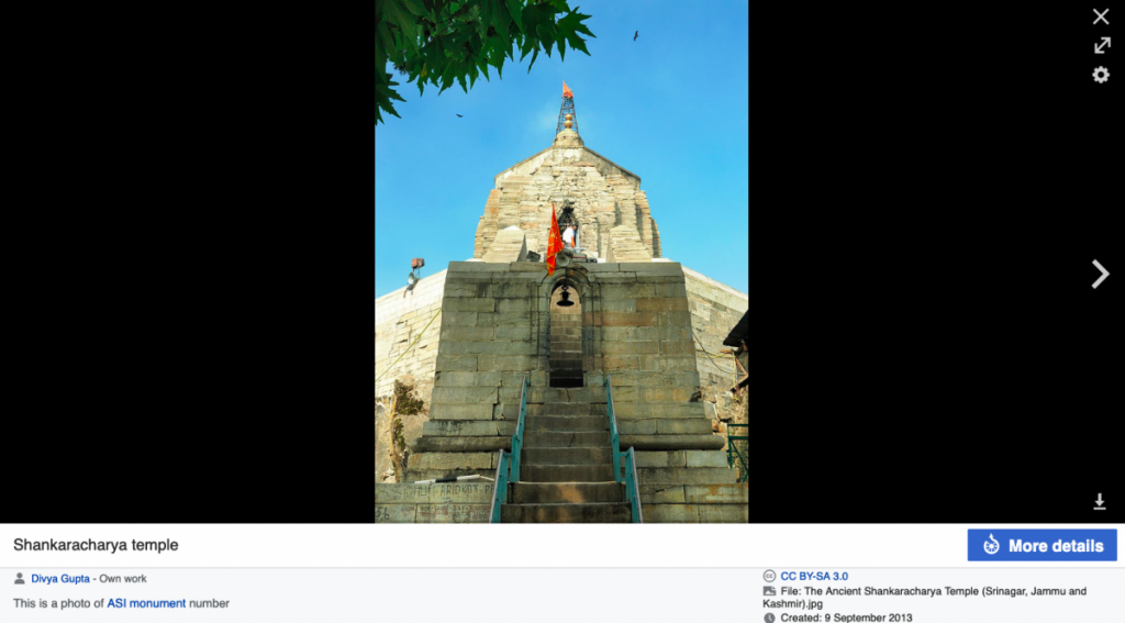 The picture of Shankaracharya Temple on Wikipedia was uploaded by Divya Gupta, a freelance photographer, in 2013. Alt News spoke with Gupta who said, “I clicked this picture after getting permission from the authorities.”