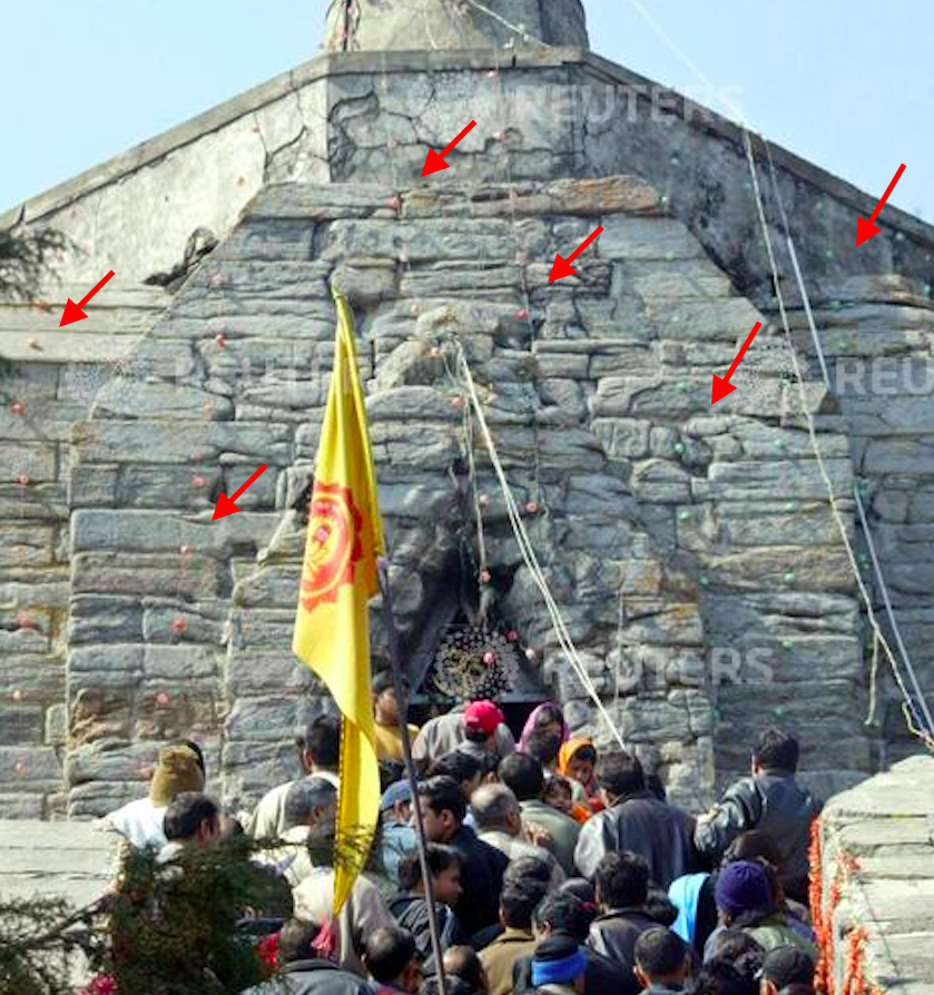 Alt News performed a keyword search on Reuters Pictures and found an image of Shankaracharya Temple from 2005 Maha Shivratri. The picture was clicked in daylight, however, the light strips are clearly visible after 2x digital zoom – as pointed out by the red arrows in the screenshot attached below.