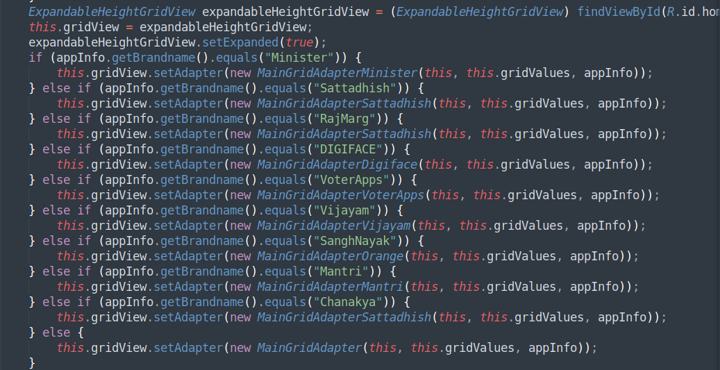 The Wire reverse engineered these apps and found that the same 'code base’ was used for multiple apps with similar Android package names that followed a specific naming format, such as this: rajyog.member****.alldata. The **** would be replaced by a unique app ID for each candidate.