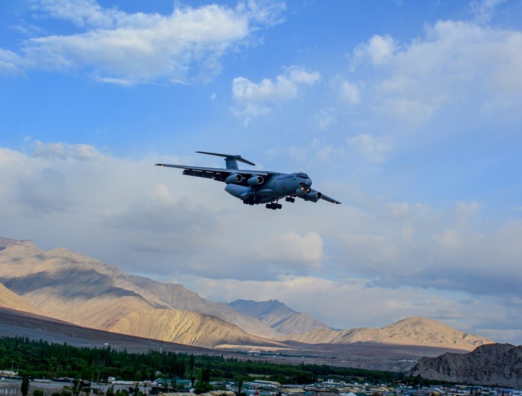 IAF IL-76 aircraft flies above Leh, in Ladakh, July 10, 2020. Photo: PTI