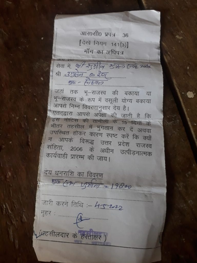 When Rajmati, who has been slapped a fine of Rs 32,000, asked an official from the Tehsil about the notice, he told her that her house is built on Gram Sabha land and she needs to pay for the duration for which she has lived there. If she fails to deposit the amount, the house will be demolished.