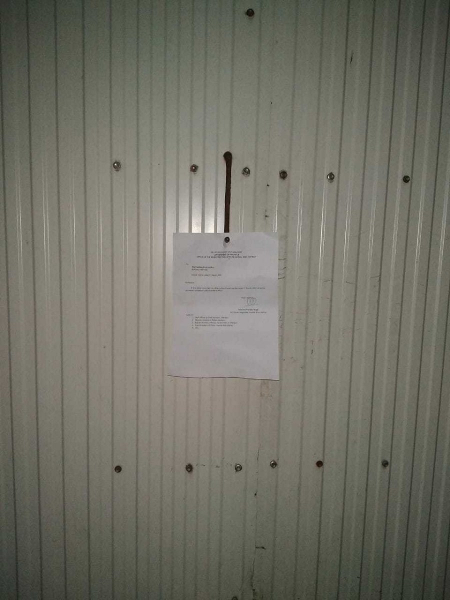 The withdrawal note pasted on the front gate of 'The Frontier Manipur'. Photo: By arrangement