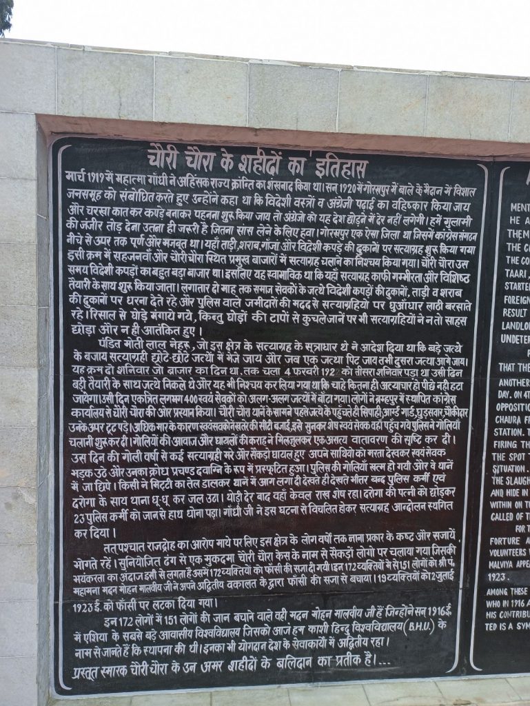 In addition, several wrong facts have been recorded in the history of the martyrs of Chauri-Chaura engraved on a granite stone at the memorial’s main entrance.