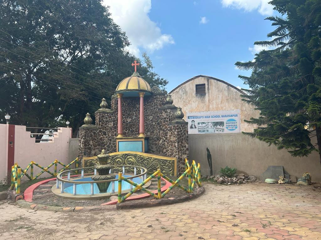 The Mother Mary statue inside Viswadeepti School was vandalised during the attack. It is yet to be reinstalled. Photo: Sravasti Dasgupta
