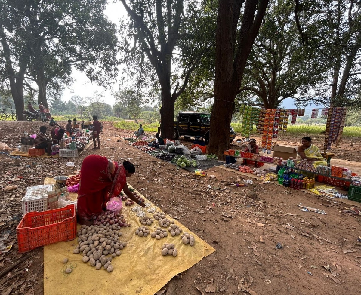 Villagers from Palnar set up their weekly Saturday market in Hiroli village. Photo: Sravasti Dasgupta/The Wire.