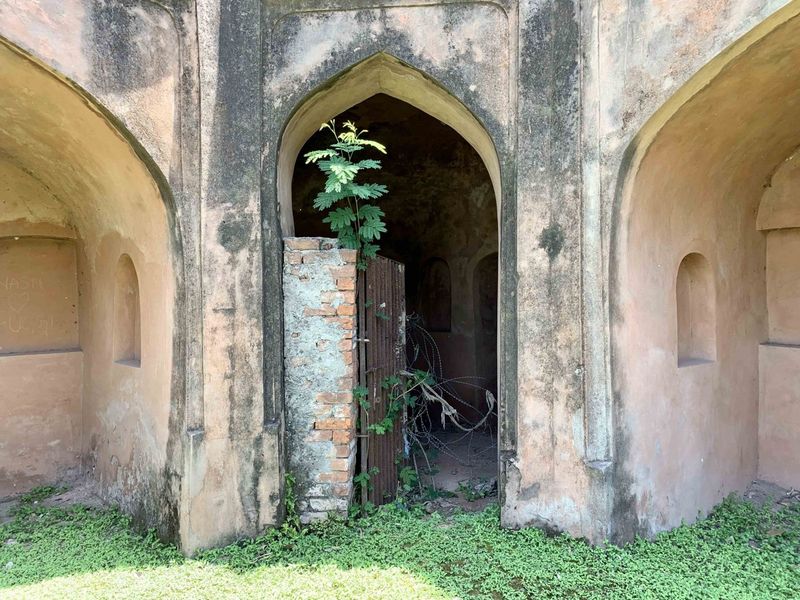 A tricolour flies atop the large, arched entrance of the fort, which is connected to the main road by an unpaved, narrow path that can’t fit more than one vehicle. The entrance to the fort is protected by a grilled, iron gate which is showing signs of rust.