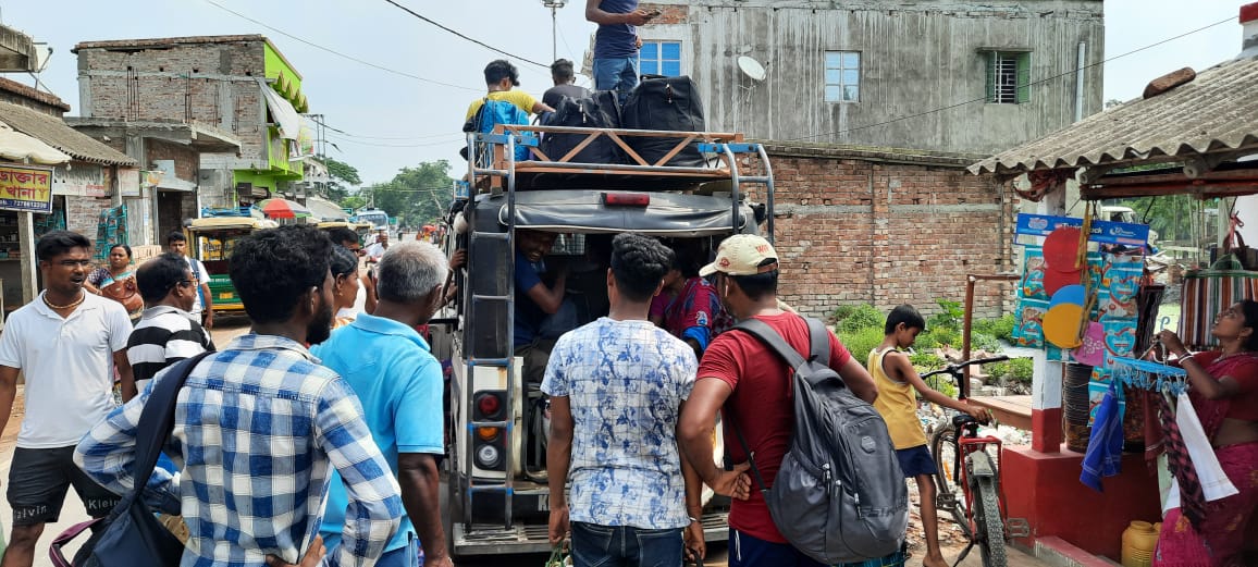 Migrant workers at Hingalgunj leaving for Tamil Nadu. Photo: Aparna Bhattacharya