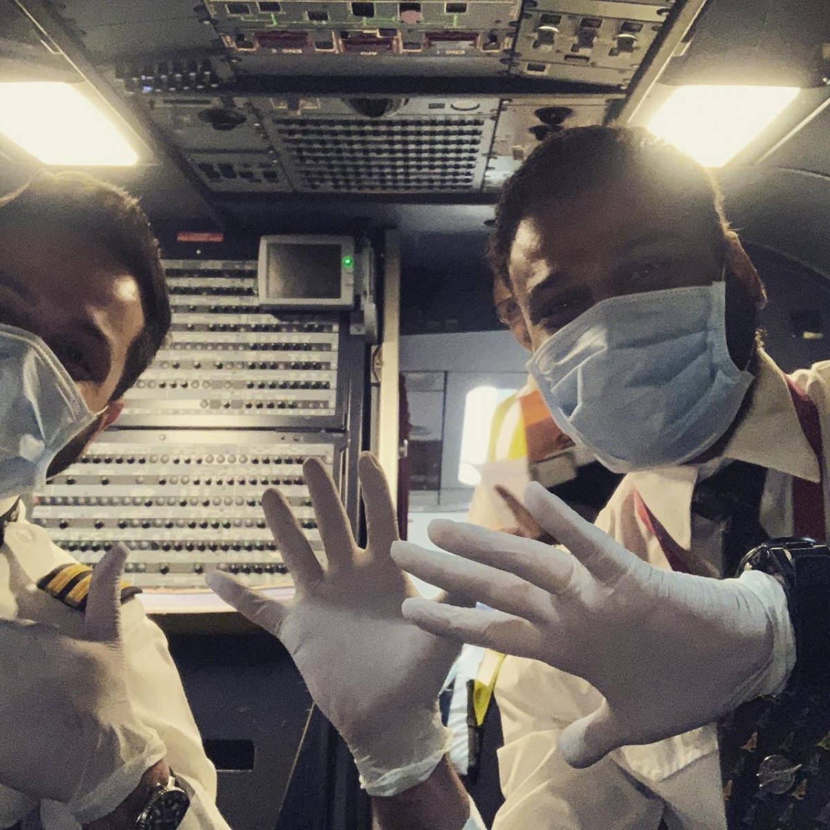 Captain Arjun Sareen (L) and Captain Dushyant Kamath evacuated 150 Indians from Abu Dhabi on March 20th. Photo: Author provided
