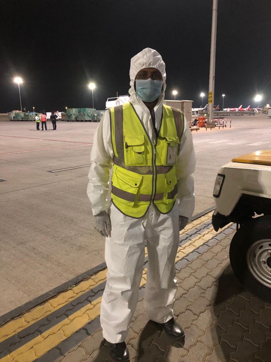 When Ajo got out of the flight in his PPE, he realised it was freezing as the temperature was two degree celsius. Then he set out with the medical team to prepare for the passengers at the entry point in the terminal building.