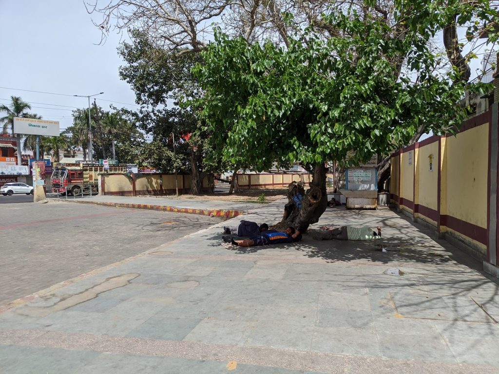There is no cooked food around. The food stalls which would have otherwise lined this area are all shut due to the lockdown.