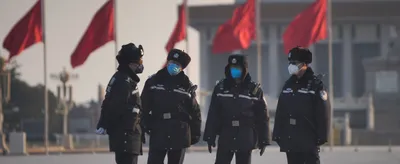 Police officers wearing masks are seen at at the Tiananmen Square, as the country is hit by an epidemic of the new coronavirus, in Beijing, China January 30, 2020. Photo: Reuters/Stringer