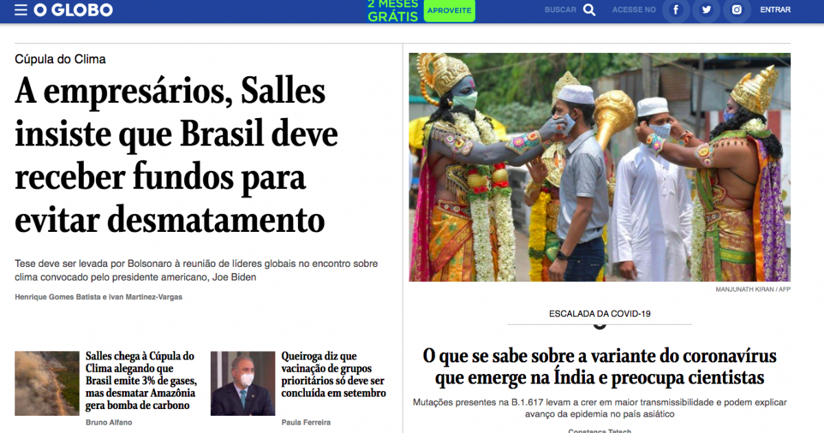For Brazil's newspaper of record O Globo, India's crisis occupies central space with a report that aims to explain what is known on the coronavirus variant that has emerged in India.