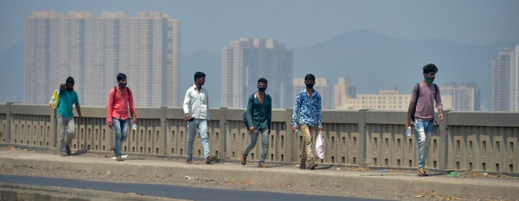 Migrant workers from Lucknow walk along Mumbai-Nashik highway to reach their native places, during a nationwide lockdown in the wake of coronavirus, in Thane, Wednesday, April 29, 2020. Photo: PTI/Mitesh Bhuvad