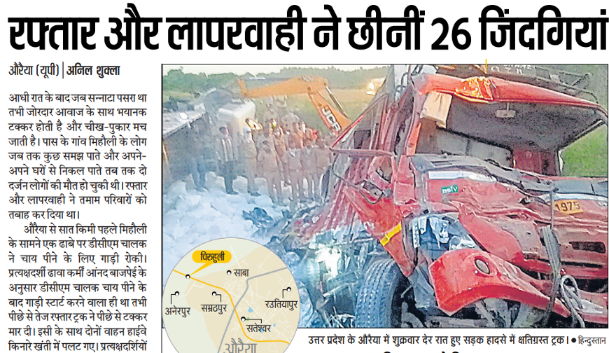 “Speed and carelessness takes 26 lives”. Hindustan (Patna), May 17.