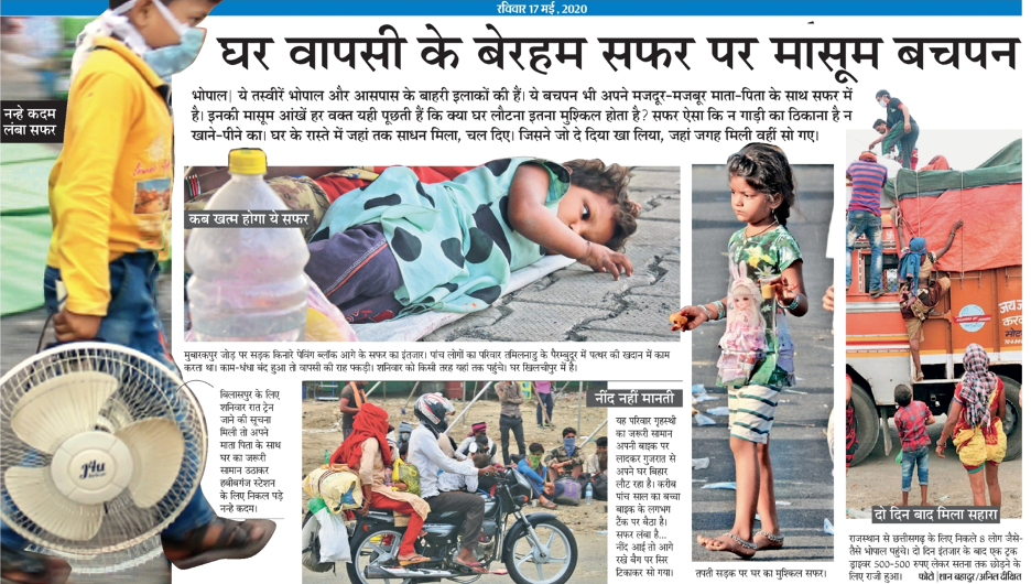 “Innocent childhood in an arduous journey back home”. Dainik Bhaskar (Bhopal), May 17.