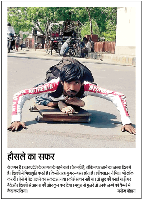 “A courageous journey”. This man’s decision to travel hundreds of kilometers despite his disability is praised as “determination”. Dainik Jagran (National Edition), May 17.
