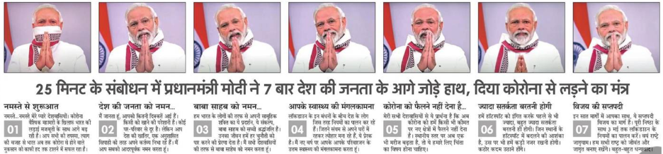 “PM Modi folded his hands 7 times in a 25-minute address, gave the mantra to fight corona”. Amar Ujala (Delhi), April 15.
