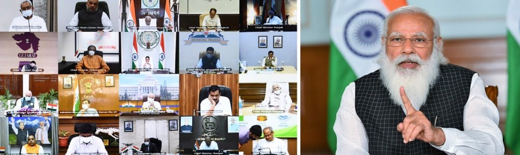 Prime Minister Narendra Modi during an interaction with chief ministers during to discuss the COVID-19 situation on April 8, 2020. Photo: pmindia.gov.in