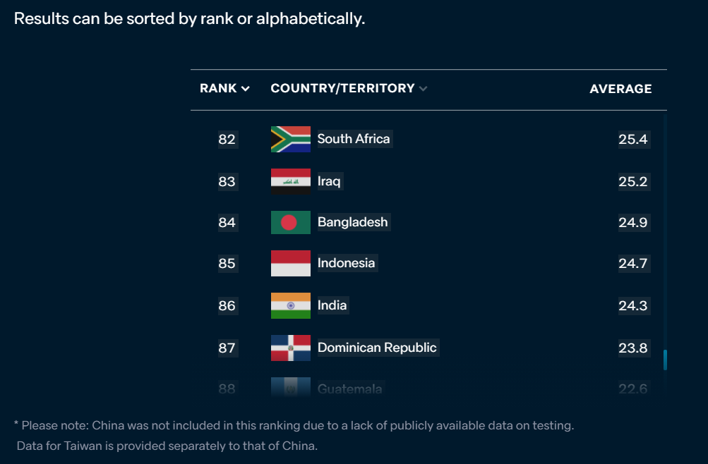 A screenshot of the ranked comparison of the average performance over time of countries in managing the COVID-19 pandemic. Photo: Lowy Institute