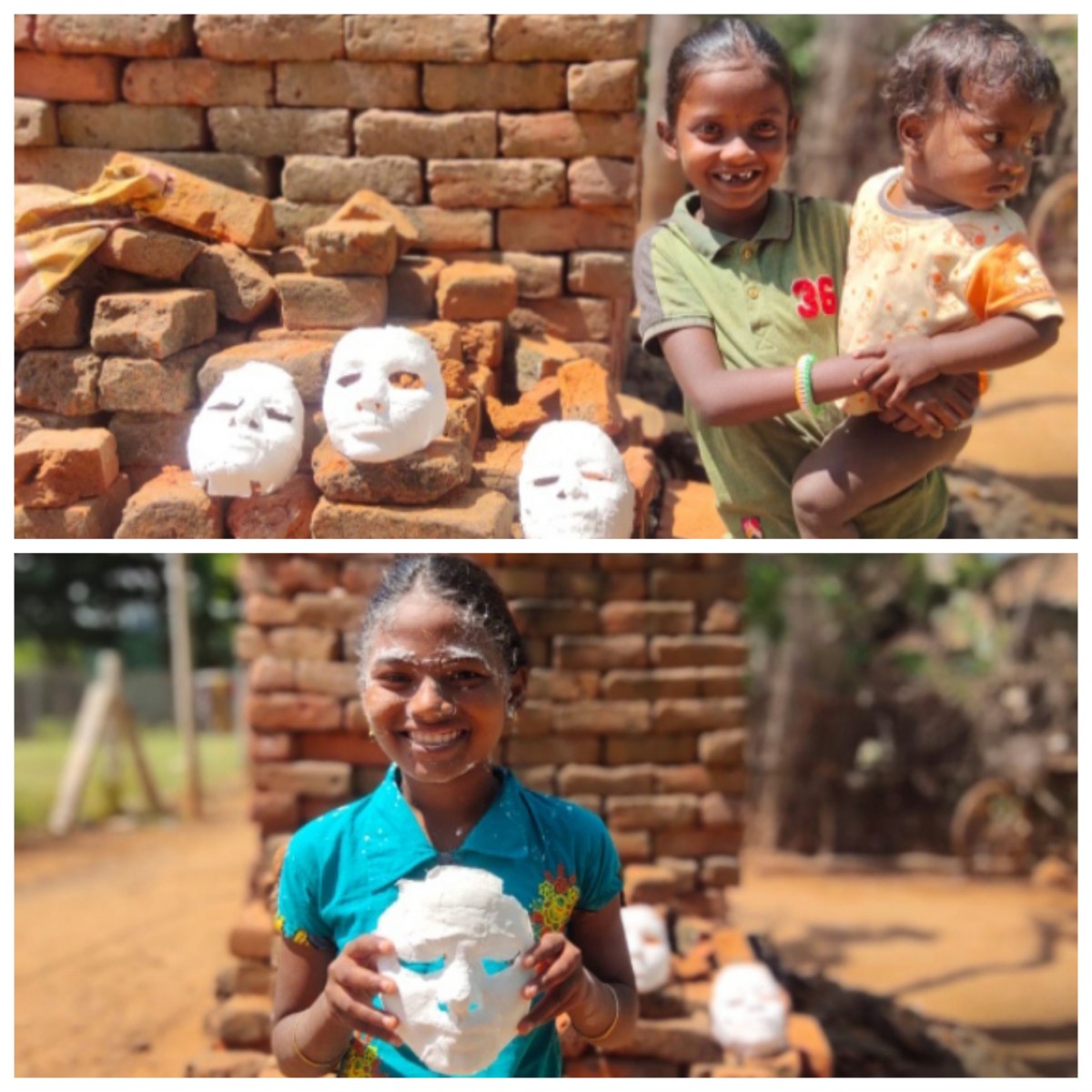 The smiles say it all: children stand with the plaster of paris moulds they have made of each other’s faces. The activity has a symbolic meaning as well: in “taking off the masks, they are rejecting the mainstream “masking” of their true personas. Photos: Sukanya Roy
