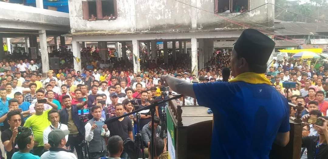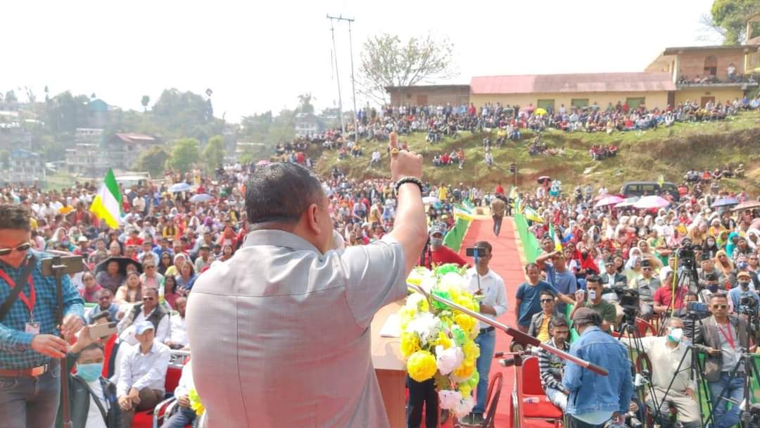 Anit Thapa of GJM(2) faction addressing a rally in Mirik, Darjeeling. Photo: Snigdhendu Bhattacharya