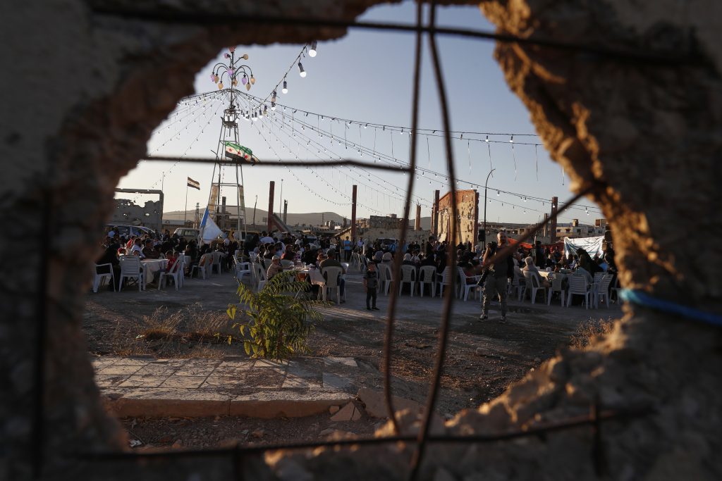 Syrians who had fled their homes during the country's civil war and spent years living in the al-Bal camp in the Aleppo countryside gather to celebrate their return to their homes in Arbeen, in the eastern Ghouta region near Damascus, Syria, Monday, Aug. 4, 2025. Photo: AP/PTI.