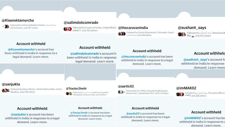 The Twitter page of these accounts read: “Account withheld…account has been withheld in India in response to a legal demand.” The request was made by MeitY to withhold these Twitter accounts to prevent the deteriorating law and order situation during the farmers’ protests.