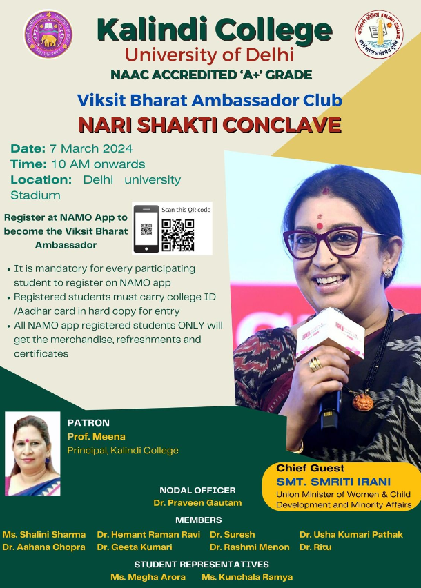 A poster of the event shared on the Facebook page of Delhi University Teachers states that the Viksit Bharat Ambassador Club’s Nari Shakti Conclave will be held tomorrow [March 7] at the Delhi University stadium in which Irani will be the chief guest.
