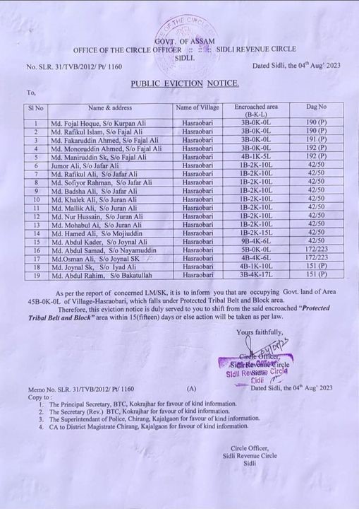 List of people who were served eviction notices in Tamulpur district, Assam.