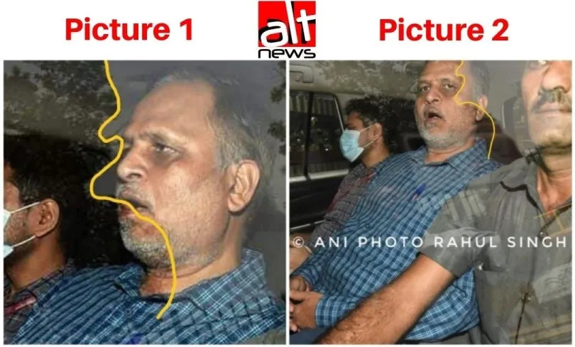 Alt News performed keyword searches on Google and Twitter to gather more information on the picture. This led us to some similar photos of Satyendra Jain in which he is seen in the same shirt he is wearing in the viral image. It is worth noting that there is no injury to his face, nor is he bleeding in these pictures.