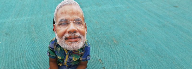 A vendor wears a Narendra Modi mask in Chennai in April 2014. Credit: Reuters/Babu