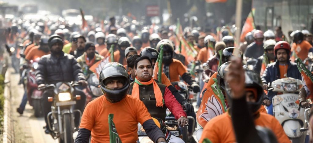 BJP supporters at a motorcycle. Photo: PTI/Ravi Choudhary/File